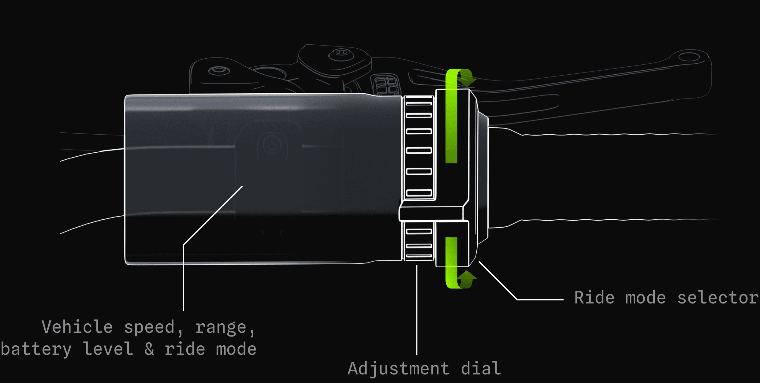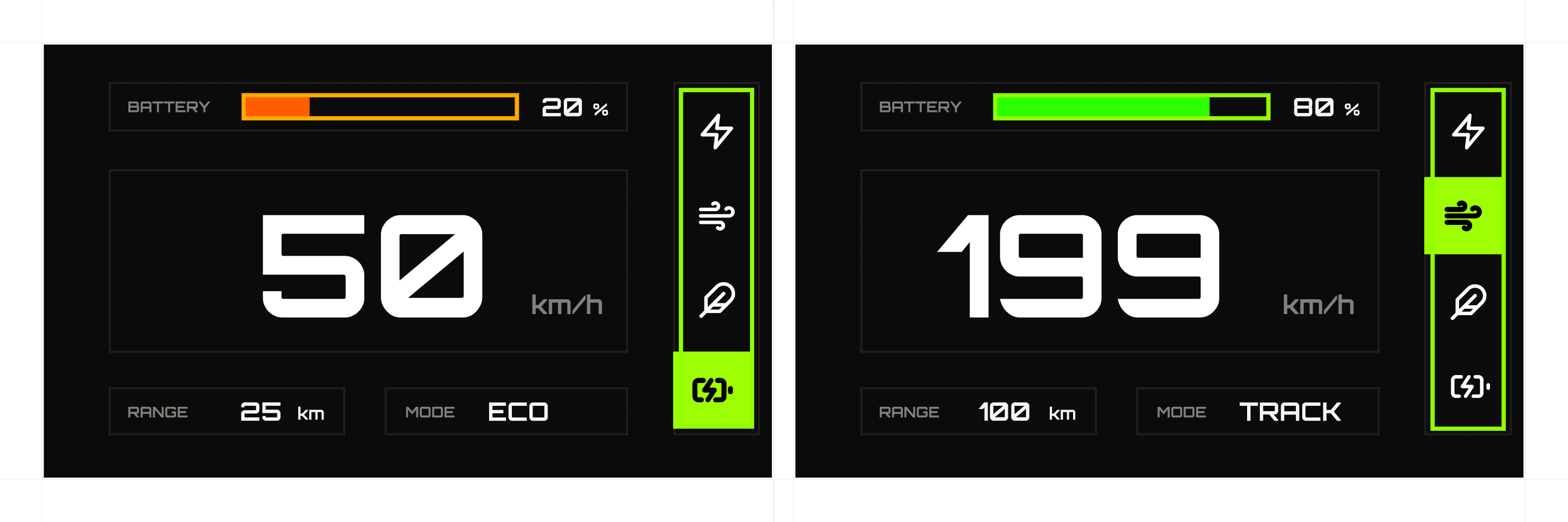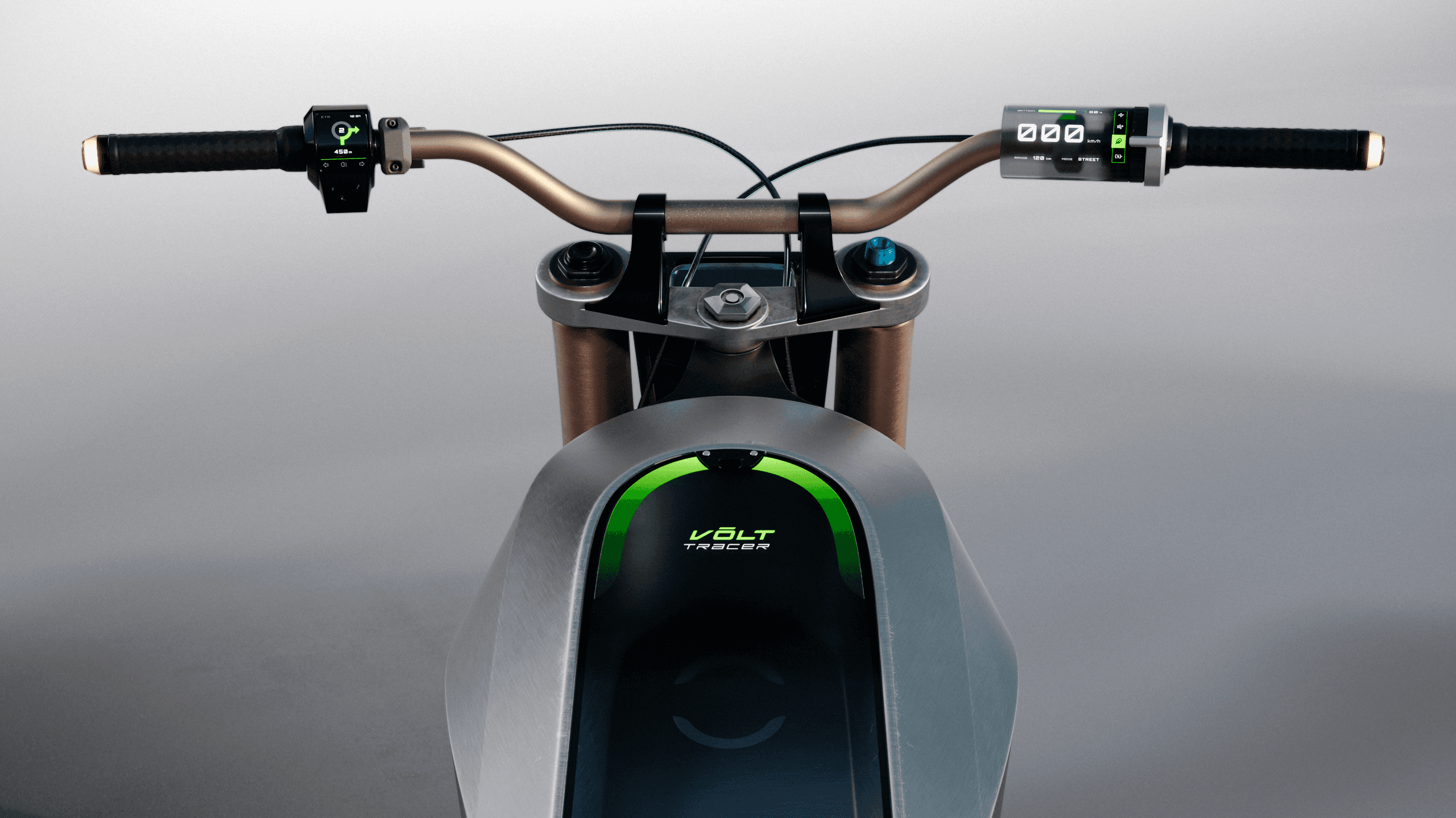 The Vōlt Tracer features a modern integrated HMI, splitting the traditional cluster in two separate displays on each side of the bars, freeing up the rider’s field of view from any obstruction. The commands stay within reach and keep the much needed tactile physical inputs & dials for immediate feedback.